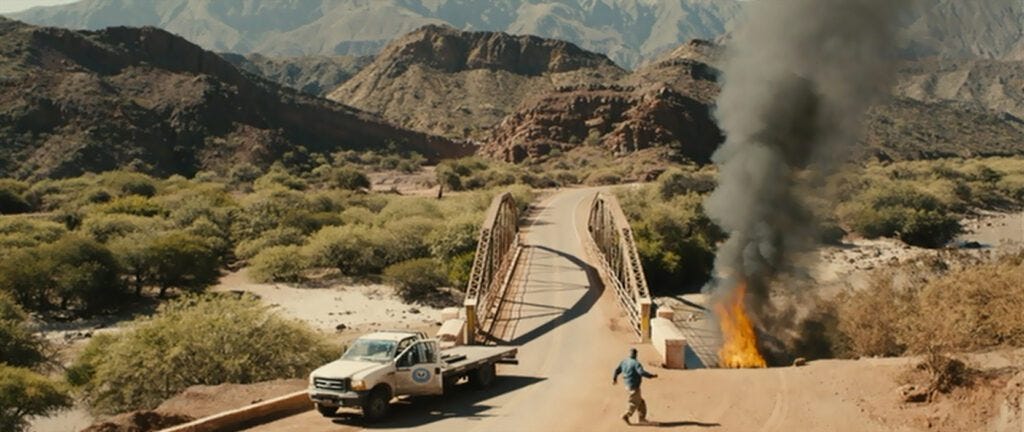 Due to Argentina having a corrupt social system during the time of the film’s invention, the director wanted to take a stand against social constructs, which he did in Road to Hell through showing people that released their primal instincts in extreme acts of violence to portray the universal appeal of “we can all lose control,” which is very obvious within this film. I also think that this film reflects the historical context of Argentina too, as it shows a class divide between the man with the old, dirty pick-up truck and the wealthy man with the clean, expensive car, but proves that all humans are the same despite their income, as 2014 was a time of economic uncertainty. I think that the genre of Road to Hell is clearly an action from start to finish, as they violence is never-ending, however it also has elements of a comedy because it was funny to watch these two men battle each other in front of such beautifully, peaceful scenery, so this dramatic irony made the film quite comedic, as well as the entertainment of seeing how far these characters will go to get revenge. The film’s mise-en-scène is memorable because of the contrast between the beautiful location and the action and violence between the two main characters. Also, fog and dust are used to signal the arrival of the truck when the man is changing his tyre to create a dramatic effect and foreshadow that something bad is about to happen, which was a small aspect that I really liked. Sound is used effectively because music is used at the start to create a positive atmosphere, however the music is not heard again after the man’s tyre becomes flat. This is intentional because it allows for audiences to focus on the action and make it seem more realistic and painful because you can hear every small movement. There is a sequence when the two characters are fighting in the car and the radio is playing, which provides comic relief because it is ironic how there is joyful music playing in the background of their extreme violence. The film is edited quite simply, with quicker jump shots during action and fight sequences to make the pace feel more rushed and dramatic. I enjoyed the performances because there was hardly any dialogue and instead, the actions described what was happening, which was unusual because most stories in Wild Tales are told more through dialogue than action. The combat scenes were very realistic, which was achieved through lots of training for the actors and well-timed match-on-action editing. The actors told their characters’ emotions through their facial features, for example, you could tell that they were angry because they bared their teeth and lowered their eyebrows as they looked up in frustration at the other person. Finally, I was really inspired by the film’s cinematography because it was filmed at low angles that were very close to the action. It changed constantly and these uncomfortable angles made viewers feel like they were part of the fight. There was a moment at the beginning as the man is driving, where the camera is inside the car and is at eye-level to the actor, so it’s like a first-person position and feels as though we are in his shoes, which creates a bond with the first character that we meet.